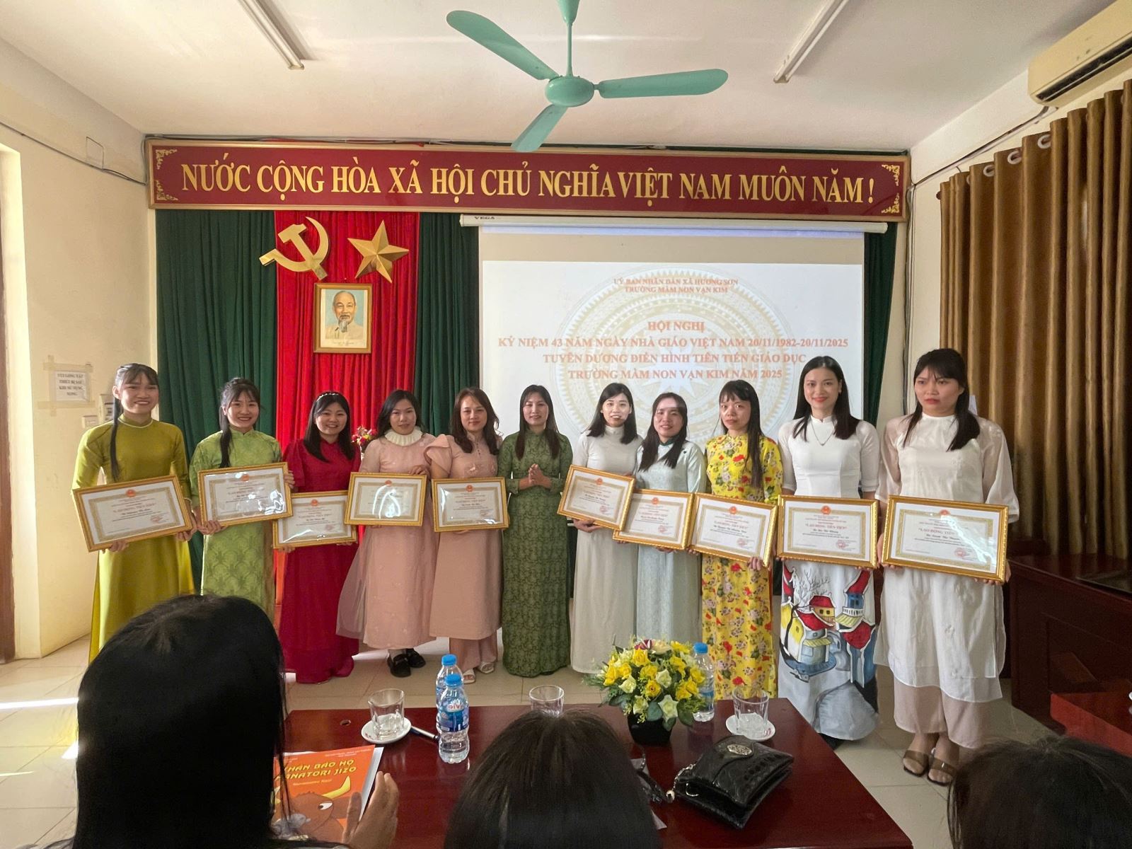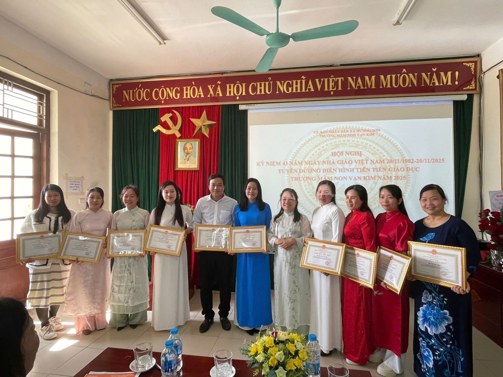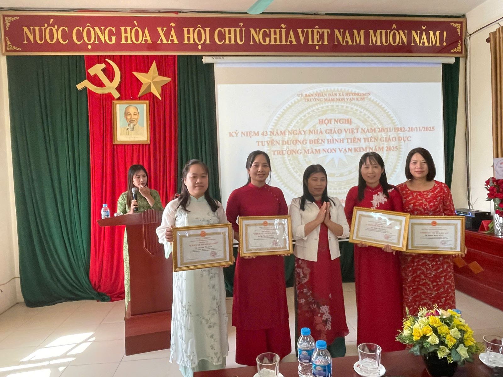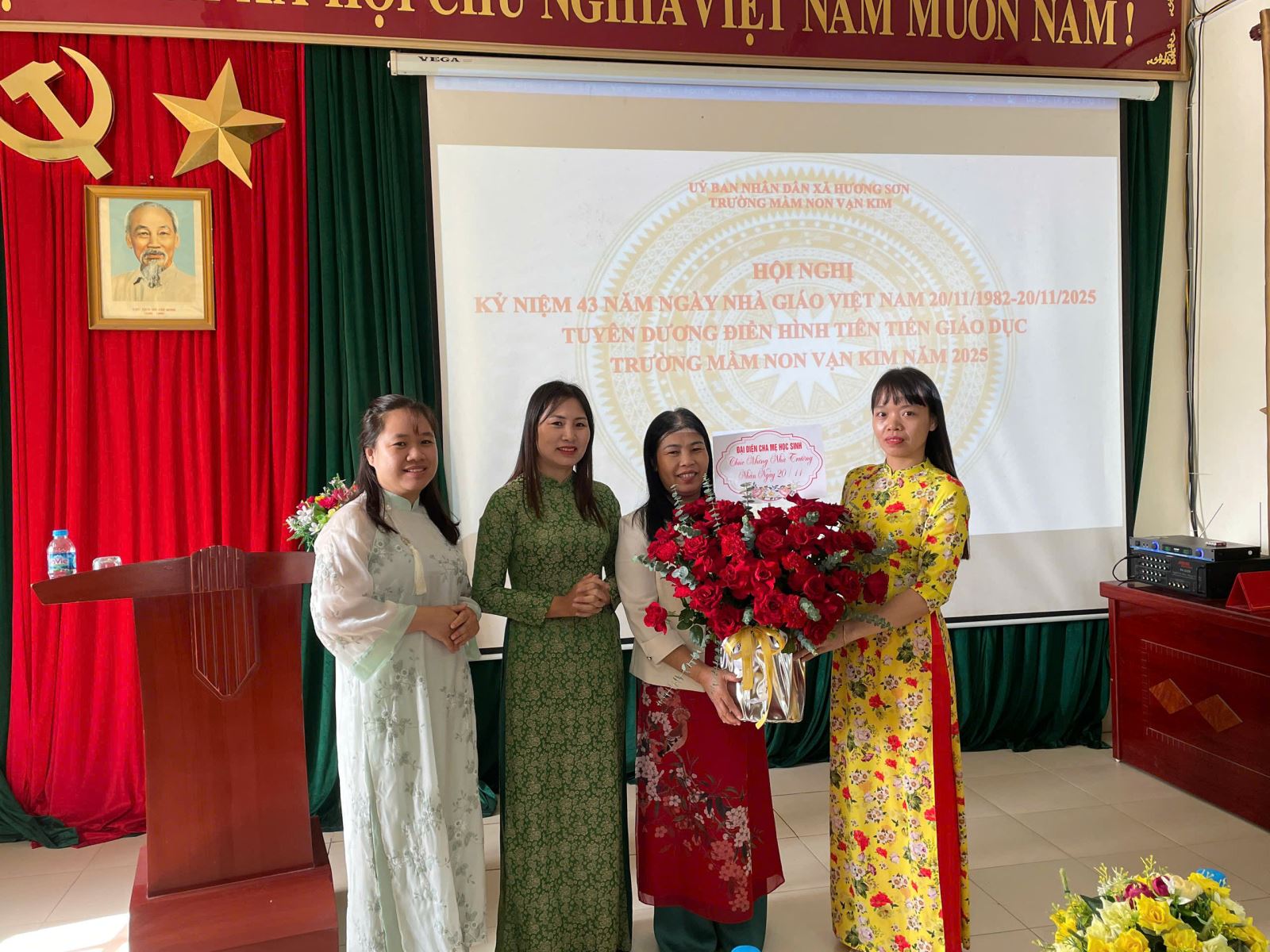 Lượt xem:14 CHÀO MỪNG NGÀY NHÀ GIÁO VIỆT NAM 20/11 Chia s? Nhân dịp Ngày Nhà giáo Việt Nam 20/11, Trường Mầm non Vạn Kim xin gửi đến toàn thể quý cô giáo, nhân viên và những người đã, đang đồng hành cùng nhà trường lời tri ân sâu sắc nhất. 20/11 là dịp để chúng ta tôn vinh những bàn tay dịu dàng đã chăm sóc, dạy dỗ và nuôi dưỡng các bé từng ngày. Với những nụ cười hiền hòa, những lời động viên ấm áp và cả sự kiên nhẫn vô bờ, các cô đã giúp các con lớn lên, biết yêu thương, biết lễ phép và tự tin khám phá thế giới. 💐 Hoạt động chào mừng 20/11 Trong không khí hân hoan của ngày lễ, nhà trường tổ chức nhiều hoạt động ý nghĩa: Các bé làm thiệp tặng cô bằng đôi bàn tay nhỏ xinh. Hoạt cảnh văn nghệ “Bé yêu cô giáo” với nhiều tiết mục dễ thương. Triển lãm tranh vẽ của bé chủ đề “Cô và lớp học”. Gặp mặt tri ân đội ngũ giáo viên và nhân viên nhà trường. ❤️ Lời cảm ơn gửi đến quý phụ huynh Nhà trường chân thành cảm ơn sự phối hợp, đồng hành và tin tưởng của quý phụ huynh trong suốt thời gian qua. Sự hỗ trợ của phụ huynh là động lực để các cô thêm yêu nghề, yêu trẻ và hoàn thành tốt sứ mệnh của mình. 🌼 Lời chúc Xin kính chúc toàn thể cô giáo, cán bộ nhân viên: Sức khỏe dồi dào Luôn giữ trọn nhiệt huyết với nghề Mãi là những “người mẹ hiền thứ hai” của các con Chúc mừng Ngày Nhà giáo Việt Nam 20/11! Trân trọng. Tải về Thông tin tài liệu CHÀO MỪNG NGÀY NHÀ GIÁO VIỆT NAM 20/11