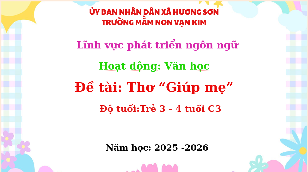 Lượt xem:38 Lĩnh vực phát triển ngôn ngữ: Đề tài -Thơ "Giúp Mẹ" -Lớp C3 Chia s? Tải về Thông tin tài liệu Lĩnh vực phát triển ngôn ngữ: Đề tài -Thơ "Giúp Mẹ" -Lớp C3