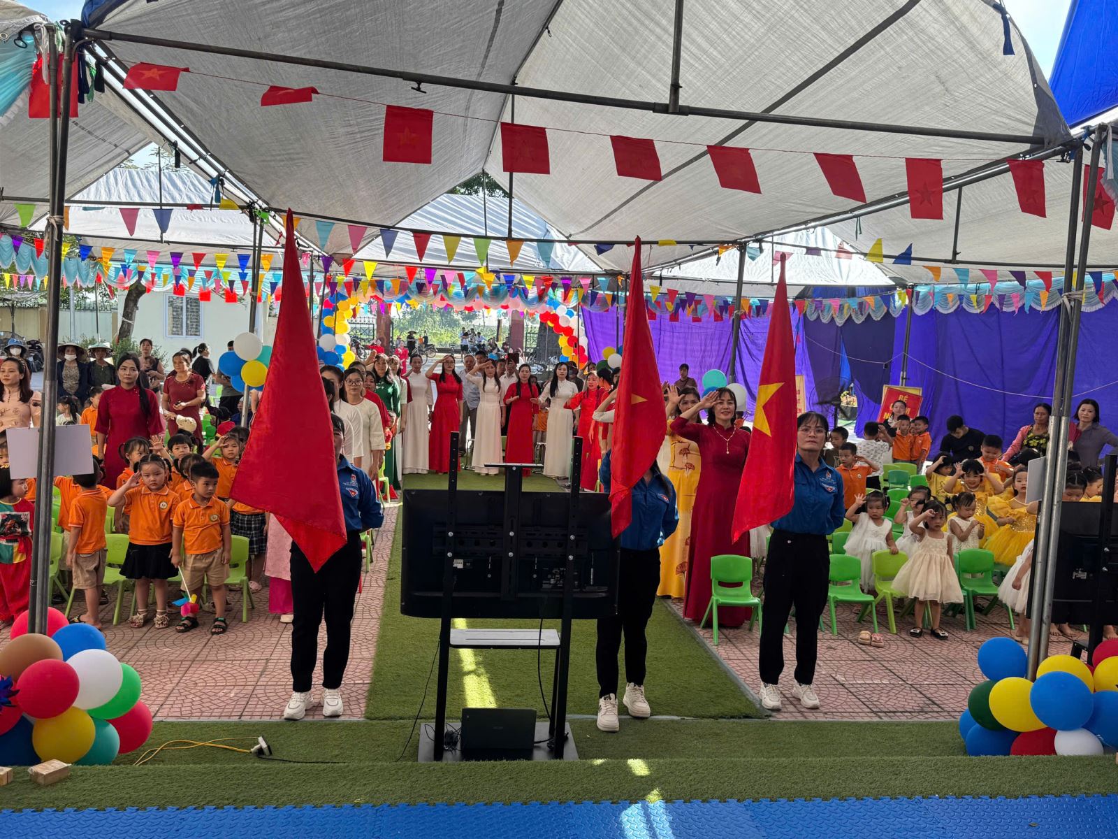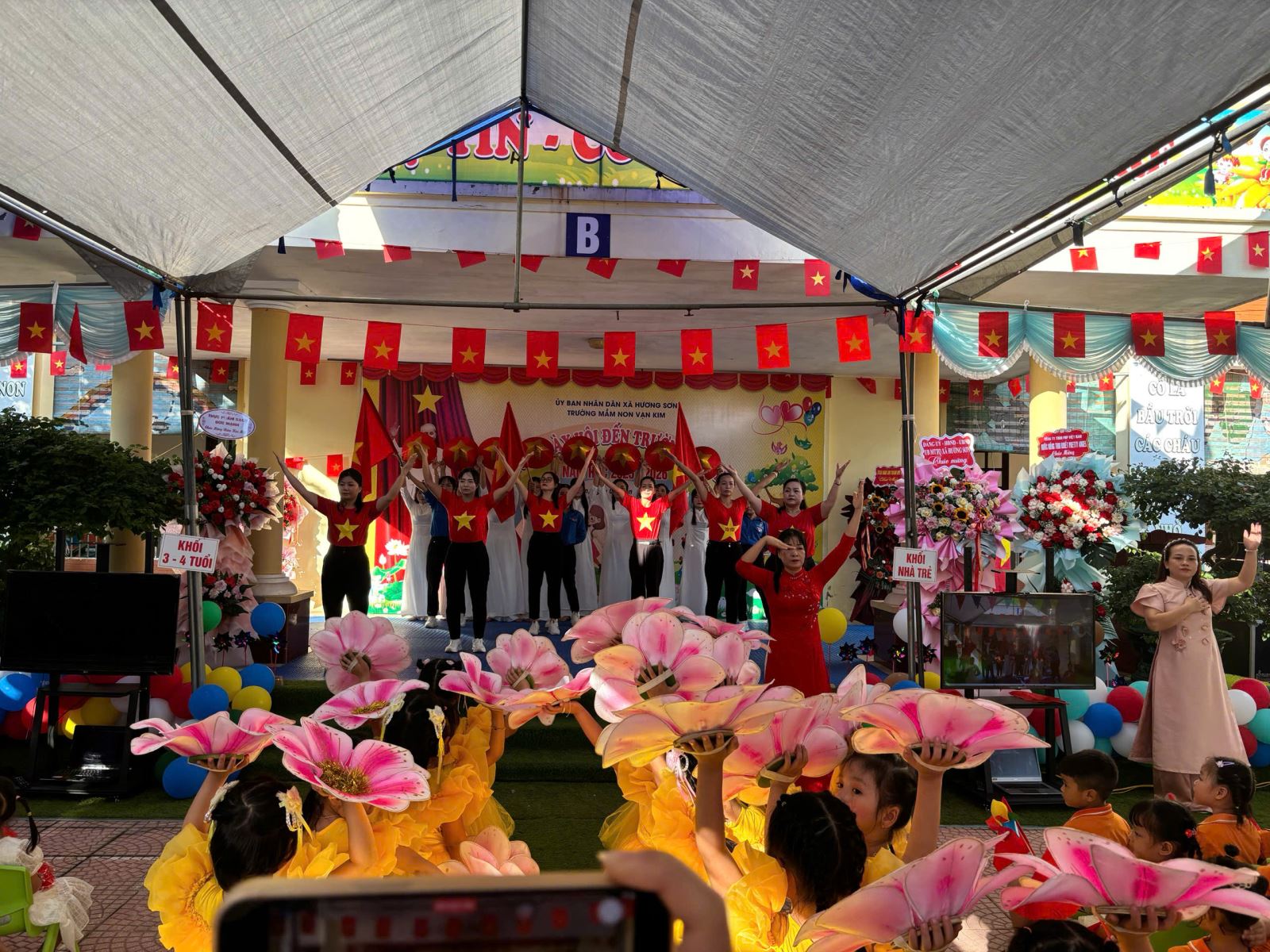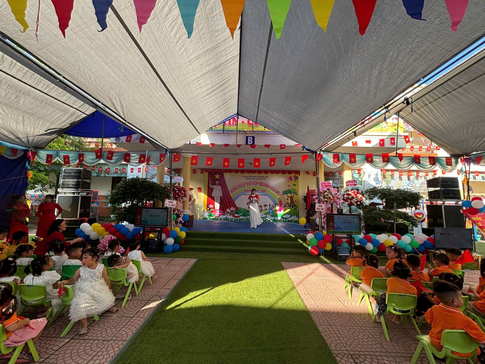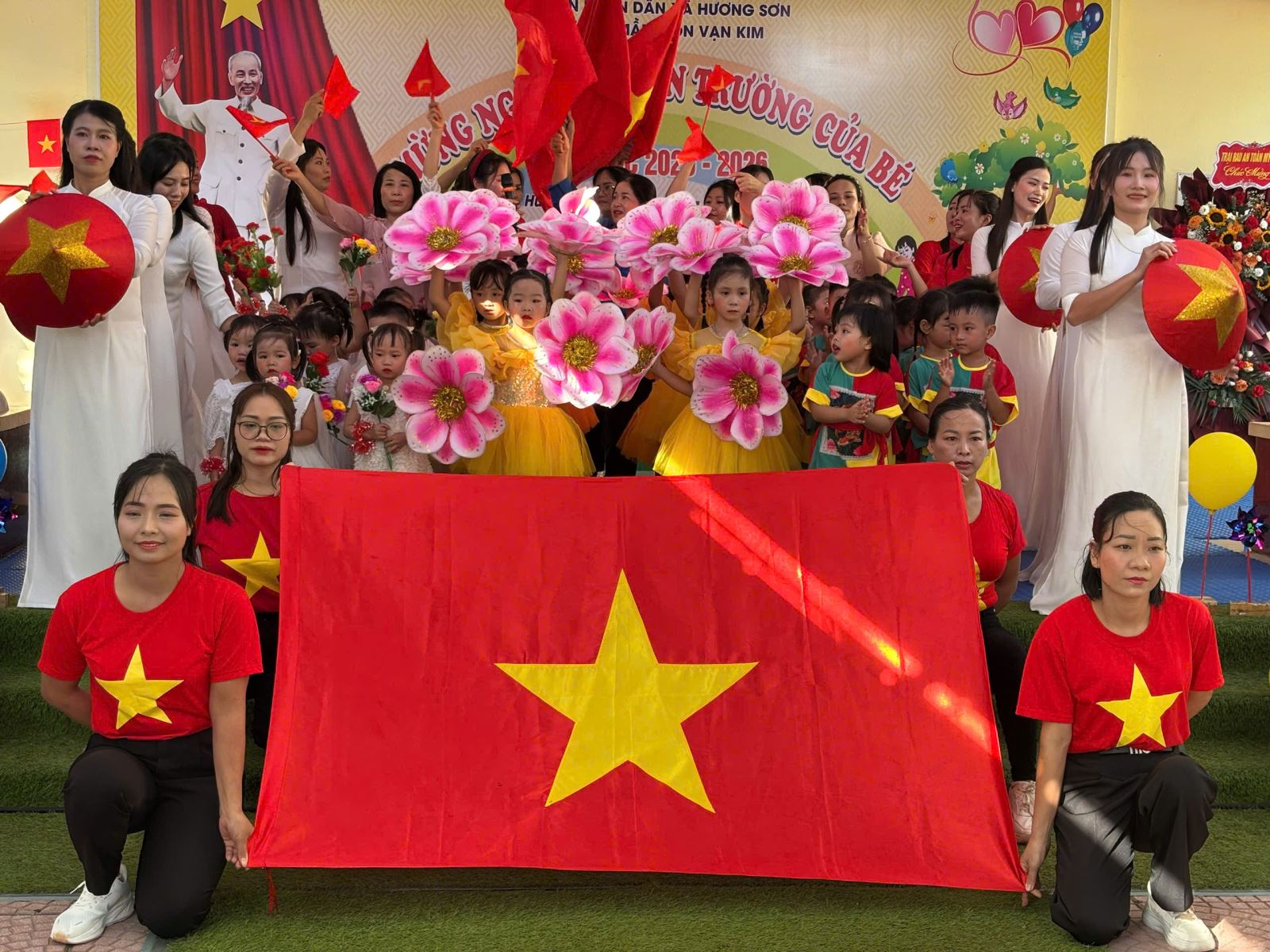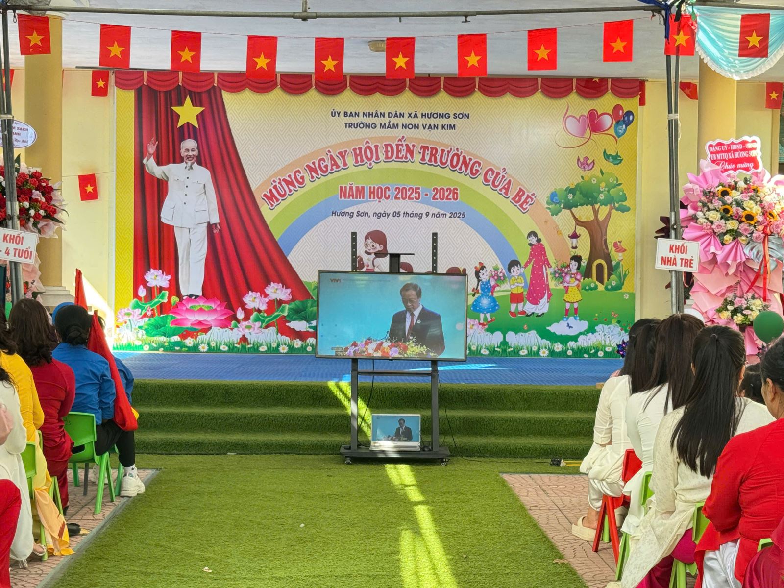 Lượt xem:55 Ngày khai giảng năm học mới 2025-2026 Chia s? Hòa chung vào không khí ngày khai trường cùng học sinh cả nước chào mừng năm học mới 2025 - 2026, cô và trò trường mầm non Vạn Kim long trọng tổ chức lễ khai giảng đón năm học mới với sự quyết tâm, lòng yêu nghề mến trẻ để có một năm học thành công, các con chăm ngoan, khoẻ mạnh và tạo dựng một ngôi trường thân thiện phát triển. Đến dự buổi Lễ có sự hiện diện của các Đ/c lãnh đạo địa phương, cùng toàn thể Cán bộ, giáo viên, nhân viên và phụ huynh học sinh. Và đặc biệt là sự có mặt của hơn 300 gương mặt hồn nhiên, xinh tươi của các bé học sinh toàn trường. Nhà trường vui mừng được lắng nghe những ý kiến chỉ đạo của đại diện lãnh đạo xã và được đón nhận các bó hoa tươi thắm của các vị đại biểu, đó như một sự động viên dành cho cô và trò trường Mầm non Vạn Kim sẽ cố gắng nỗ lực hơn nữa trong năm học tới. Tại buổi lễ Cô Nguyễn Thị Thám - Hiệu truởng nhà trường đã gửi đến cho các cháu những lời chúc, lời chào đón hân hoan, gửi tới sự cảm ơn của lãnh đạo cấp trên, và những lời chúc, lời động viên tới toàn thể cán bộ GVNV trong nhà trường, hưa hẹn một năm học mới sẽ có nhiều kết quả tốt trong năm học 2025-2026. Tải về Thông tin tài liệu Ngày khai giảng năm học mới 2025-2026